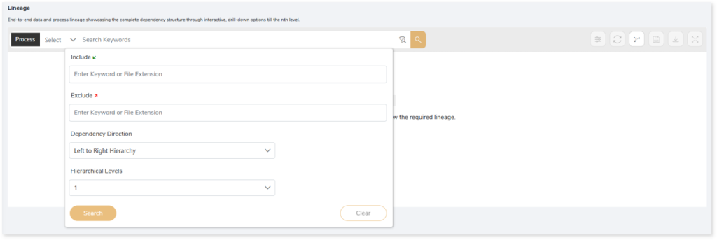 To view the required lineage, enter the keywords in the Search Keywords field and then click the Search icon.