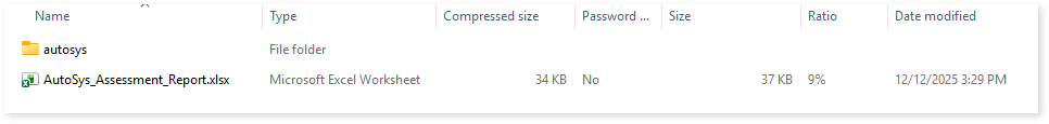 Here, you can see AutoSys_Assessment_Report.xlsx and autosys folder.
