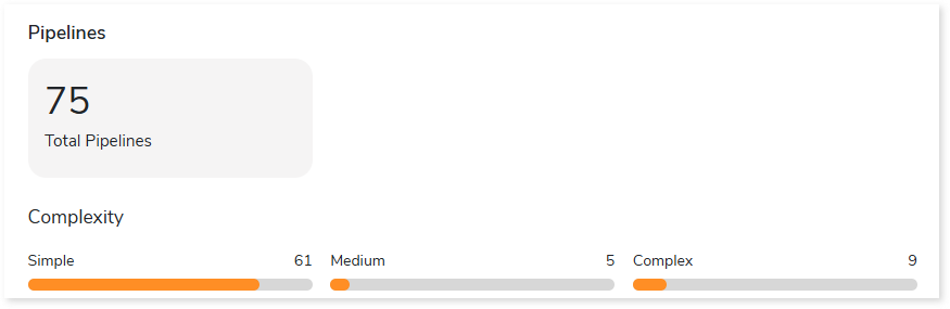 This section provides information about the total number of pipelines in the entire inventory along with the complexity breakup.