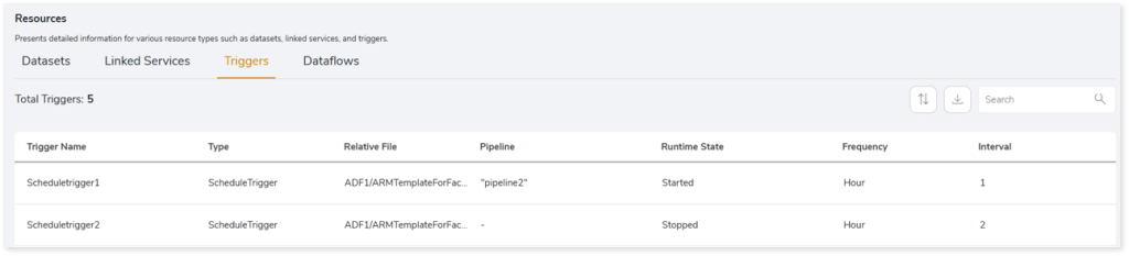 trigger_details.csv: This report provides detailed information about triggers, including their associated pipeline, frequency, interval, type, and more.