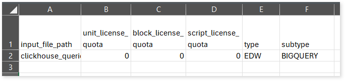 license_quota_info.csv: This report provides information about the anticipated license quota deduction when executing a transformation pipeline or notebook using the same source input file that was used during the assessment. It includes details about the expected quota consumption for units, blocks, and scripts.