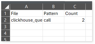 sql_keywords_frequency.csv: This report provides the frequency of patterns such as call, exec, and execute found in DML and stored procedure input files. For example, if function_exec_func appears in a file, it is counted under the exec pattern frequency.
