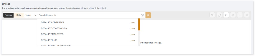- Select either the Process (Process Lineage) or Data (Data Lineage) tab.