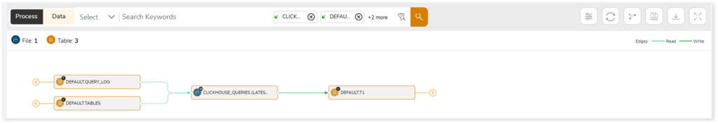 - Process lineage illustrates the dependencies between two or more processes such as files, views, tables, etc.