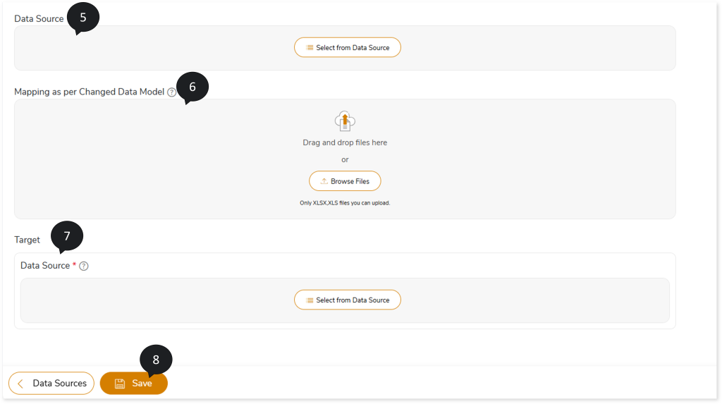 2. In Mapping as per Changed Data Model, upload files for mapping between source and target tables and columns.