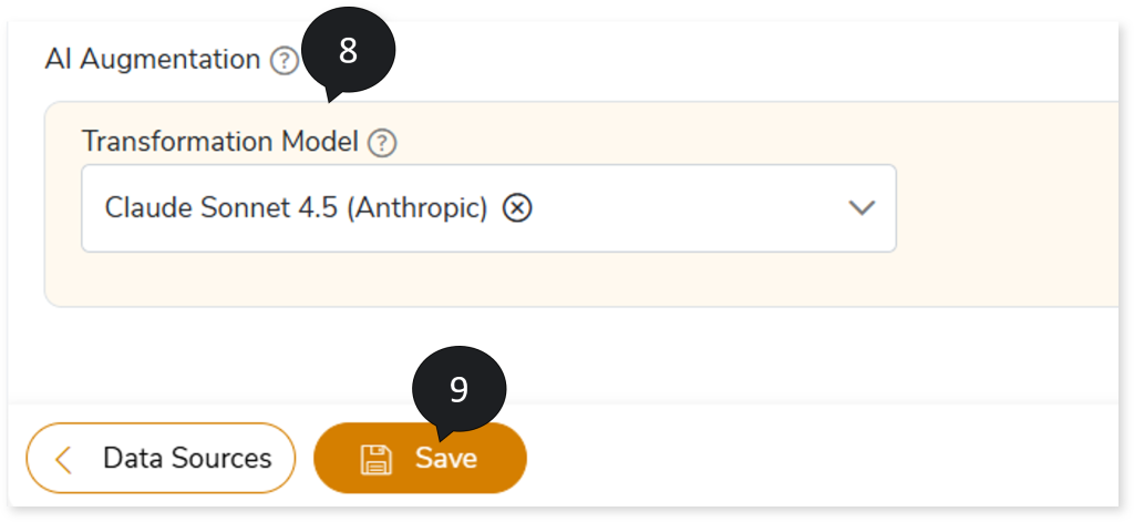 - In AI Augmentation, select the preferred Transformation Model to convert SAS code that requires augmented transformation and optimize it for accuracy and performance, including agentic AI‑led conversion of SAS scripts—particularly data steps and PROC SQLs.