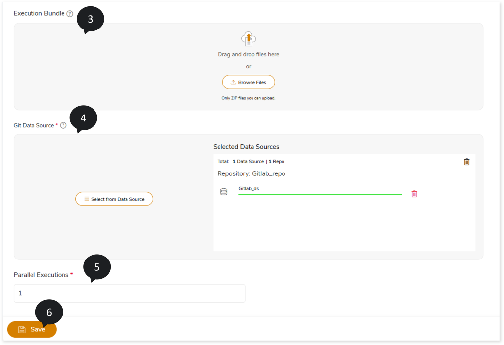 - In Execution Bundle, upload the converted scripts that need to be executed over the selected target. In the integrated pipeline, converted artifacts will be automatically fetched from the previous stage (BI Conversion stage).