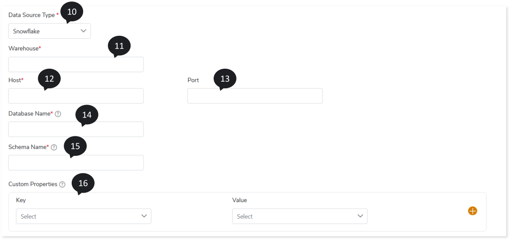 - In Data Source Type, select the source database such as SQL Server, Snowflake, etc., to load the data.