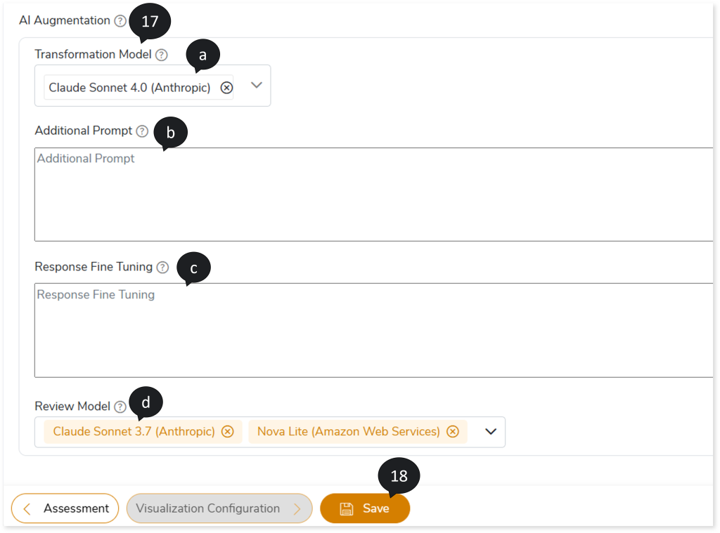 - In AI Augmentation, select the preferred Transformation model to convert calculations that require augmented transformation and then optimize them and validate them for accuracy and optimal performance.