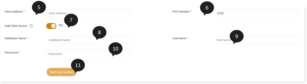 - Add Data Source: Enable the Add Data Source toggle to add a database connection and enter the required connection details.