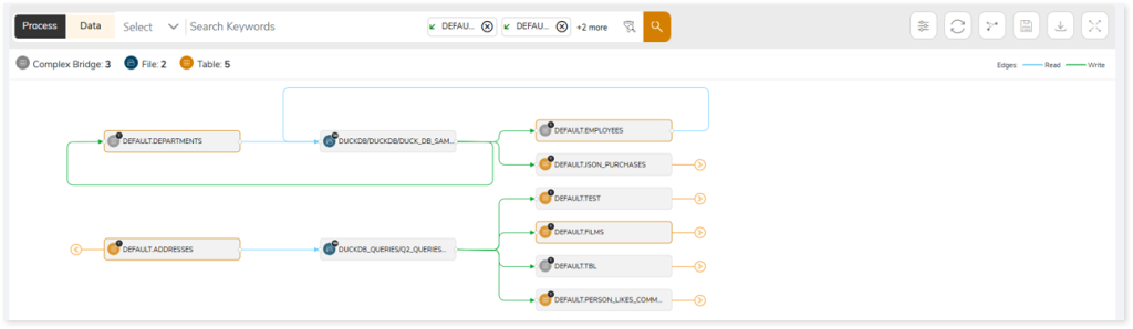 - Select either the Process (Process lineage) or Data (Data lineage) tab.