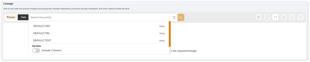 - To generate column-level lineage, enable Include Columns toggle (available in Data Lineage).