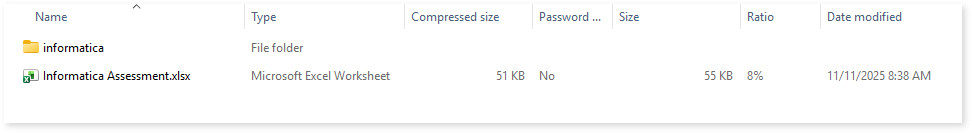 Here, you can see the informatica folder along with Informatica Assessment.xlsx report.