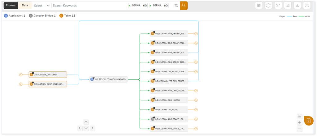 End-to-end data and process lineage identify the complete dependency structure through interactive and drill-down options to the last level.
