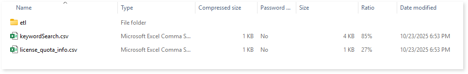 license_quota_info.csv: This report provides information about the anticipated license quota deduction when executing a transformation pipeline or notebook using the same source input file that was used during the assessment. It includes details about the expected quota consumption for units, blocks, and scripts.