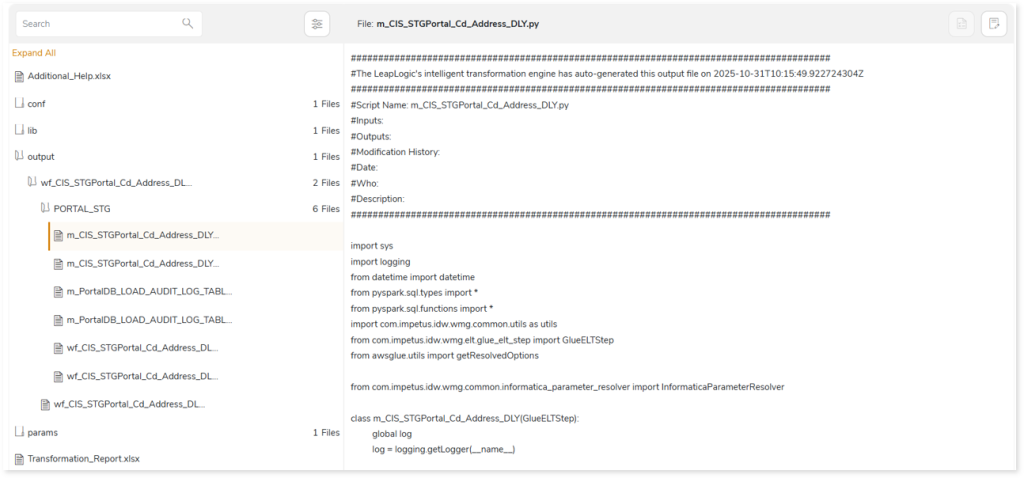 This topic provides a detailed report of the converted artifacts (Python) which can be directly consumed on the target platform. Select to download the converted artifacts for offline use.