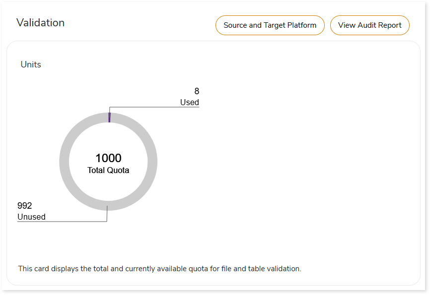 This card displays the total and currently available quota for file and table validation.