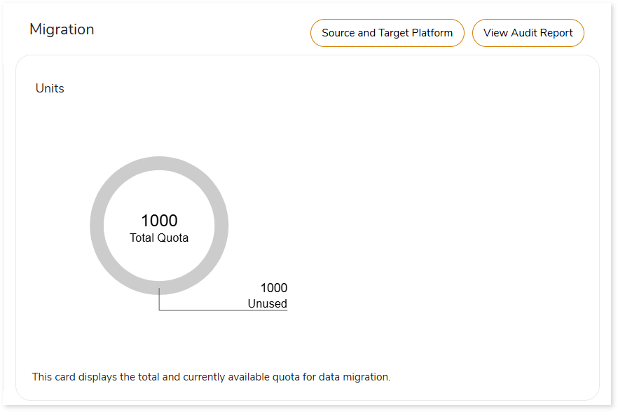 This card displays the total and currently available quota for data migration.