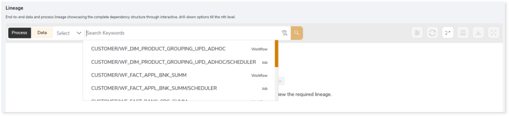 The end-to-end data and process lineage identify the complete dependency chain through a variety of interactive and drill-down options till the nth level.