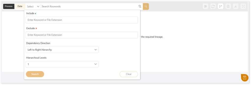1. Select either the Process or Data tab to enable process or data lineage respectively.