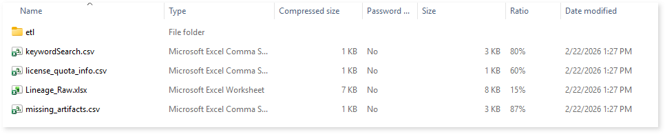 This section provides lineage-related reports, including entity_link.csv, entity_report.csv, entity_summary.csv, link.csv, script_report.csv reports.