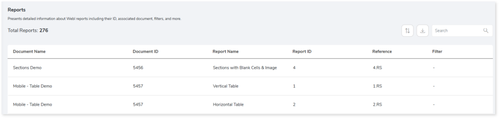 - Report Name: Displays the name of each report.