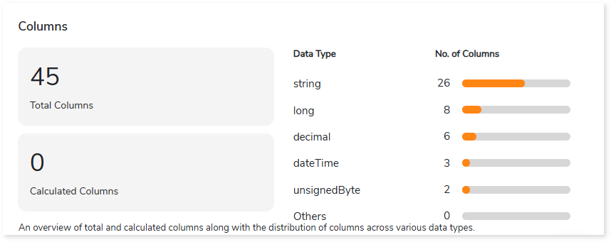 This section provides an overview of the total and calculated columns along with the distribution of columns across different data types.