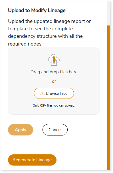 - After making the required changes, upload the updated lineage report in Upload to Modify Lineage.