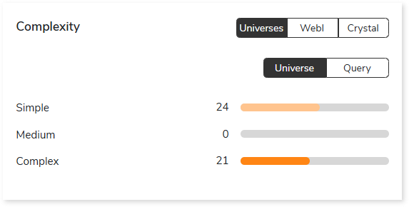 - Universes: Displays complexity assessment for Universes and queries.