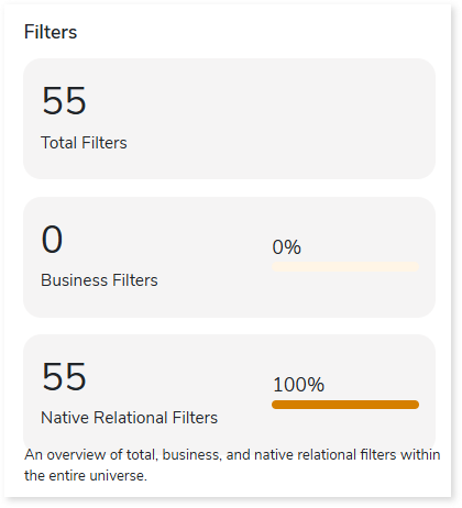 - Filters: Displays the total number of filters in each Universe.