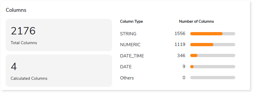 - Data Type: Lists the data types and the number of associated columns arranged in descending order.