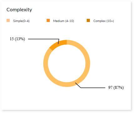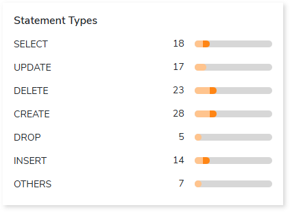 This section displays a summary of analyzed queries based on the query distribution sorted by the different query statement types in the input source file. Moreover, it displays a visual representation of the complexity breakdown across various statement types.