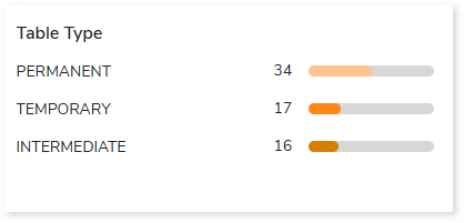 This section provides summary of queries segregated by the break-up of table types. Table types are categorized according to the different statement types available in the input workload.