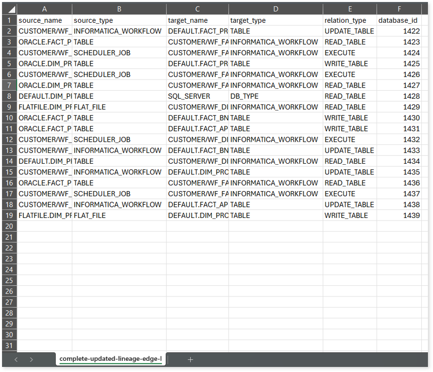 - Once the complete lineage report is downloaded, you can make necessary updates such as updating, deleting or adding the nodes and its relationships.