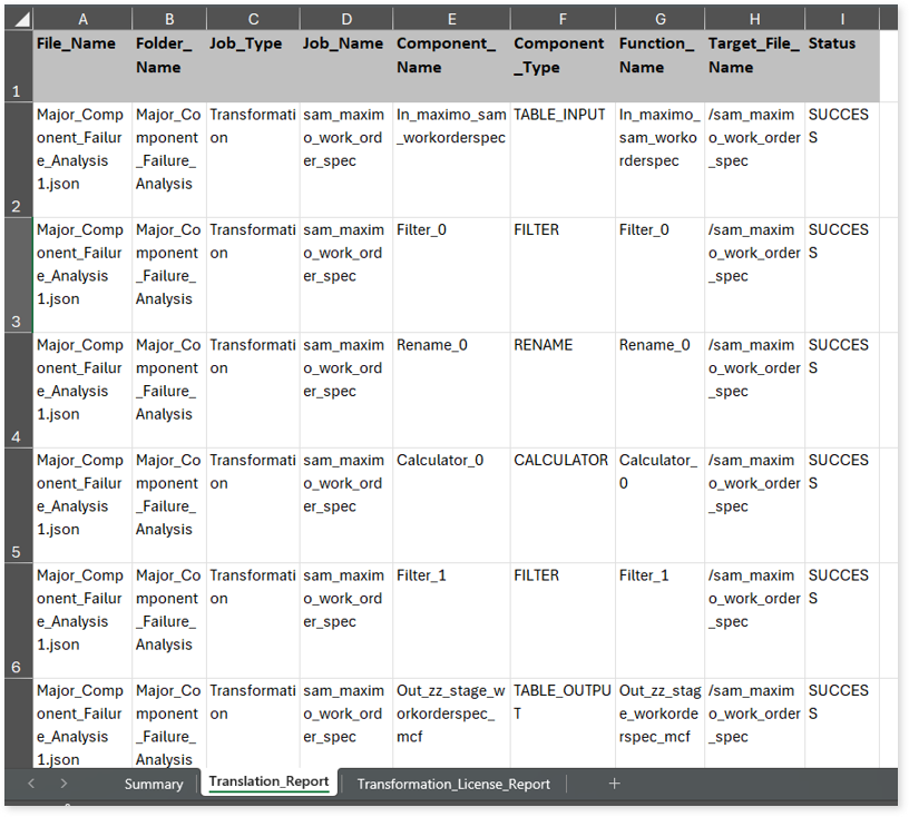 - Translation_Report: Provides a comprehensive report of the Matillion conversion, including jobs, components, functions, and more.