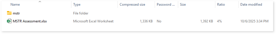 Here, you can see the mstr folder and the MSTR Assessment.xlsx report.