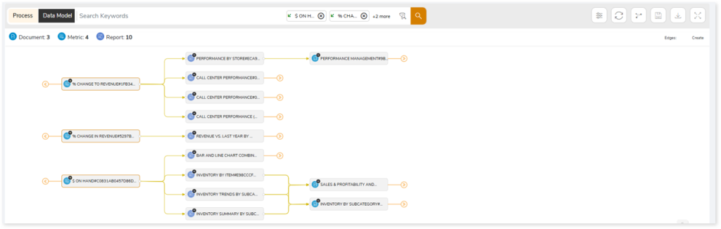 End-to-end process lineage identify the complete dependency structure through interactive and drill-down options to the last level.