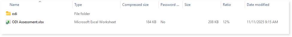Here, you can see the odi folder along with ODI Assessment.xlsx report.