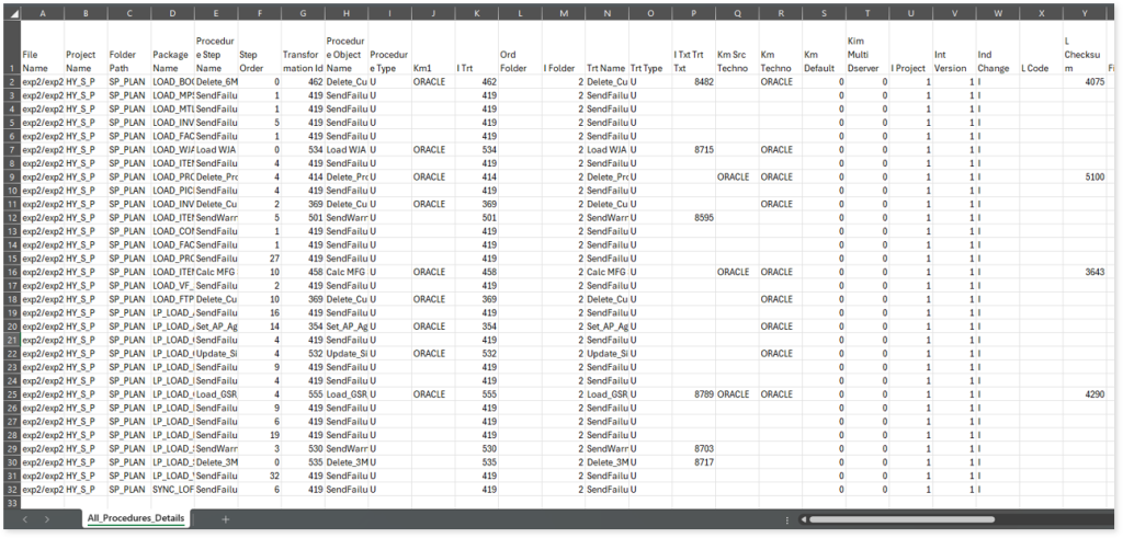 Load Plan Details.csv: This report provides comprehensive information about load plans including scenarios, scenario steps, execution orders, used and unused tables, and more.