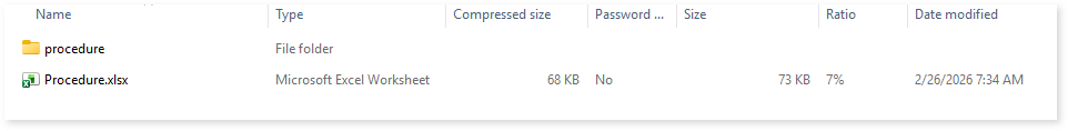 Here, you can see the procedure folder along with Procedure.xlsx report.