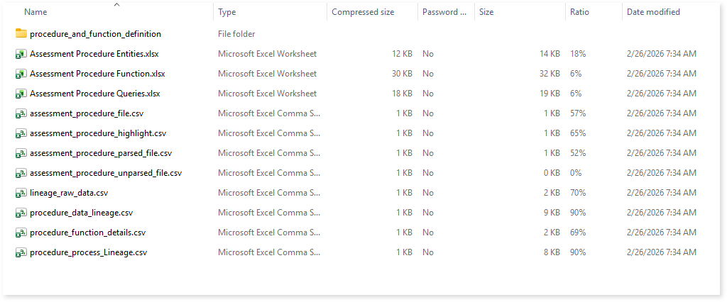 Procedure.xlsx: This report provides insights about the source inventory. It includes information about macros, entities, parsed files, and more.
