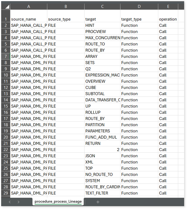procedure_process_lineage.csv: This report provides information about the process lineage of procedures, including details about source and target types, operations, and more.
