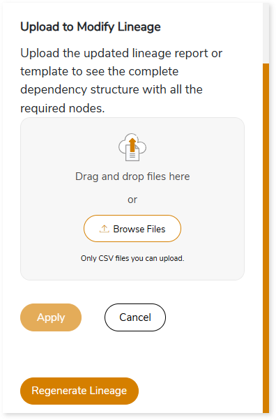 - After making the required changes, upload the updated lineage report in Upload to Modify Lineage.