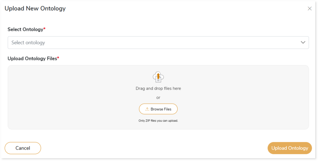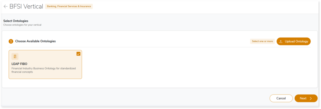 - On the Select Ontologies page, select the required ontology. Alternatively, you can add a new ontology as follows:
