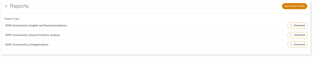 Downloadable reports allow you to export detailed SSRS assessment reports of your source data which enables you to gain in-depth insights with ease. To access these assessment reports, click Reports.