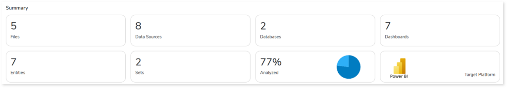 This section provides a comprehensive report of the source file including statistical information about databases, dashboards, and so on along with the complexity of each file.
