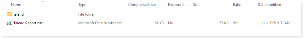 Here, you can see the talend folder along with Talend Report.xlsx.
