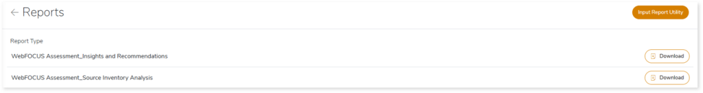 Downloadable reports allow you to export detailed WebFOCUS assessment reports of your source data which enables you to gain in-depth insights with ease. To access these assessment reports, click Reports.